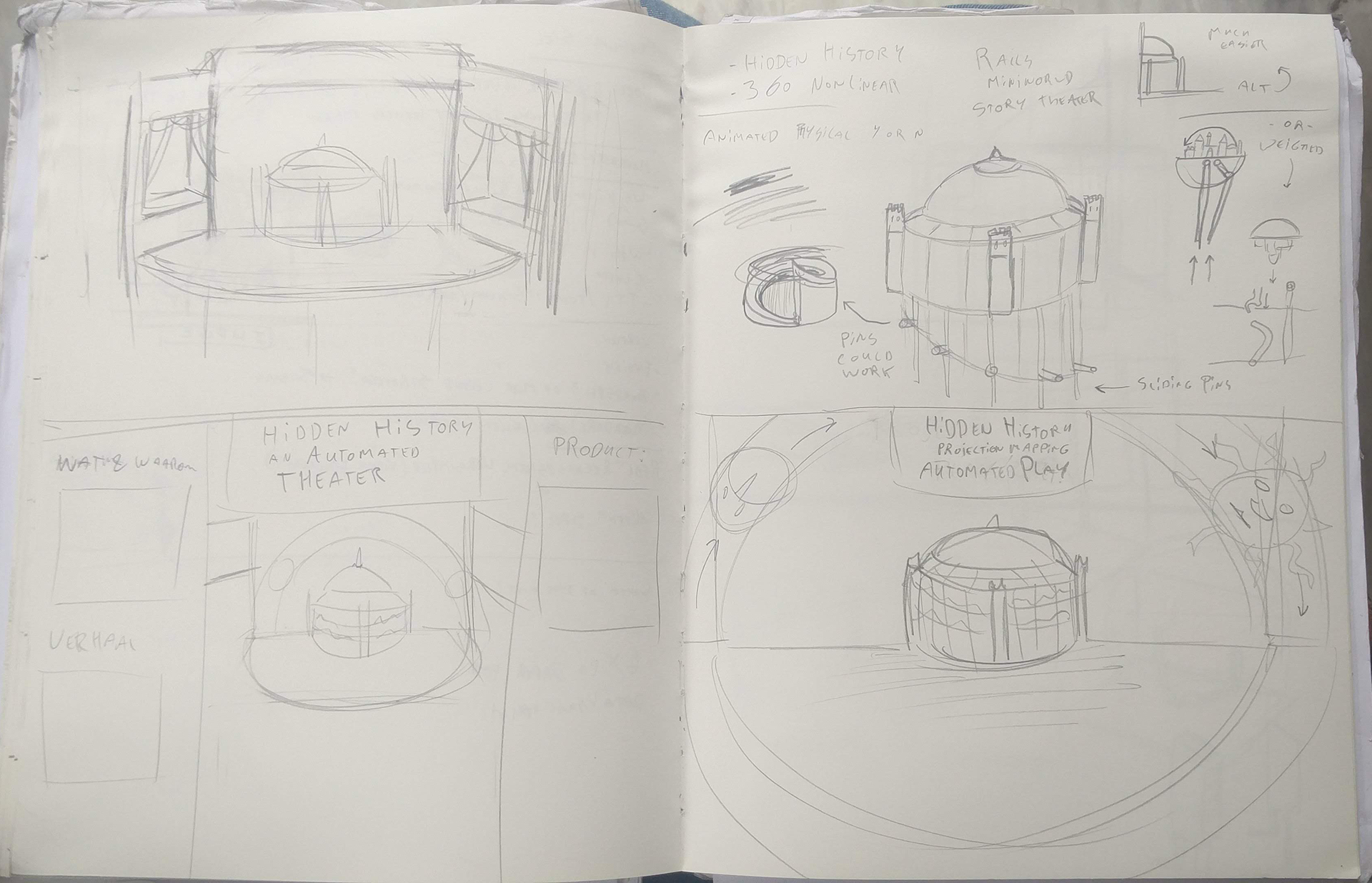 Pictured below: Original studies, sketches, and brainstorm doodles from Hidden History's development